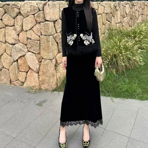 2025秋季新款法式复古新中式马甲丝绒半身裙套装女气质两件套裙子