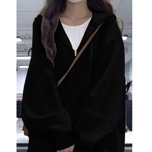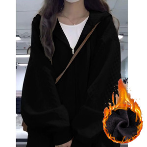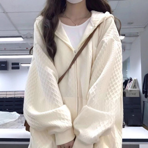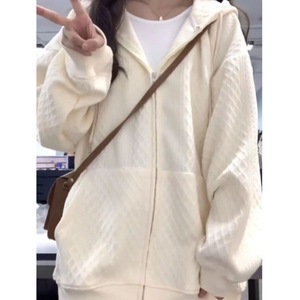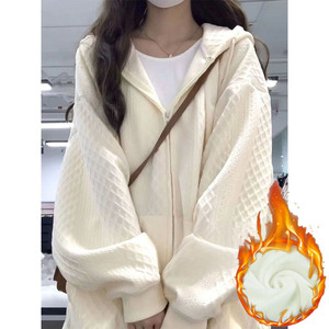 常规360g 加绒420g 华夫格连帽卫衣女秋冬设计感小众宽松外套上衣