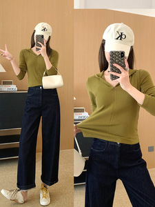 闪闪专属!定纺软糯羊毛短款上衣半门襟拉链显瘦连帽卫衣G091318