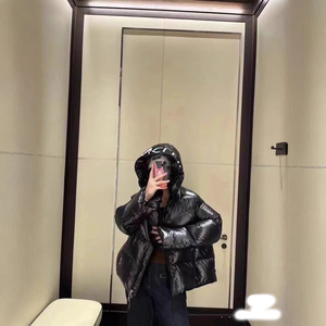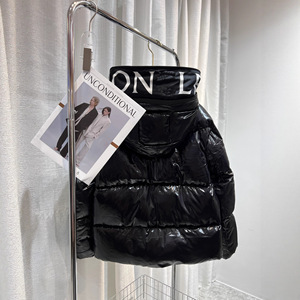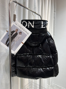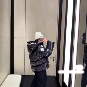 跨境蒙家秋冬新款连帽字母织带短款面包服羽绒加厚保暖外套男女同