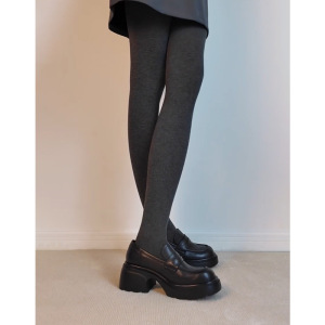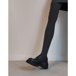 羊皮版~新款厚底松糕一脚蹬乐福鞋女复古英伦黑色百搭小皮鞋单鞋