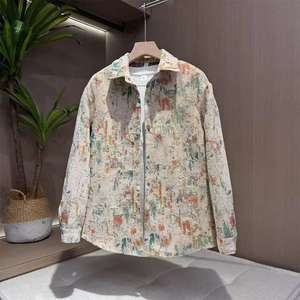 秋季新款高级感提花翻领衬衫外套时尚潮流百搭男女同款休闲夹克