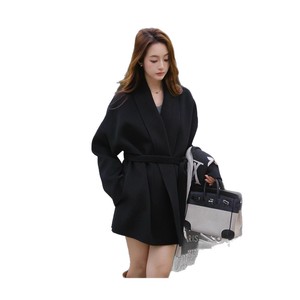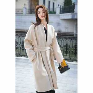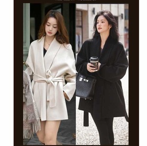 2025冬季新款浴袍大衣澳毛翻领双面呢外套女宽松系带显瘦羊毛上衣