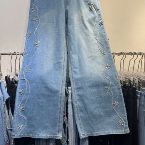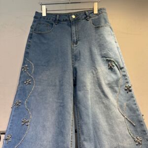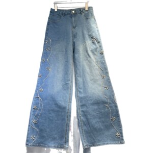 2025秋季新款重工水钻花朵设计牛仔裤时尚大码显瘦直筒裤子