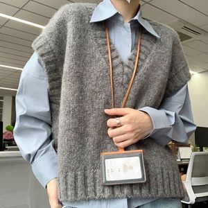秋冬学院风马甲两件套装/灰色v领坎肩外穿针织背心+蓝色长袖衬衫