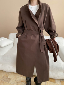司南 街头英伦风 天丝棉设计感一粒扣系腰带廓形风衣外套 SN8035