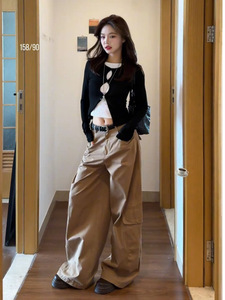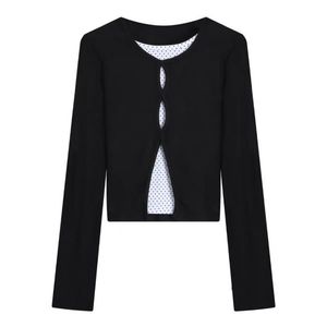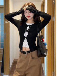 【工厂直发】假两件镂空波点长袖t恤女5秋季新修身显瘦小众打底衫