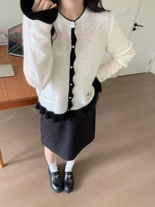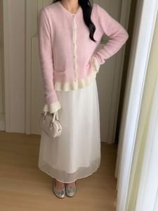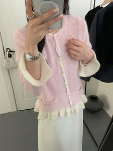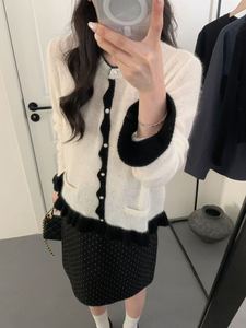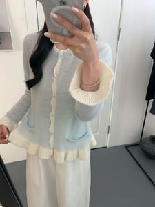 之言25秋冬季女装韩系亮片荷叶边气质拼色羊毛浣熊绒针织套头毛衣