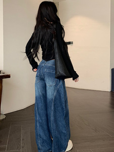 高腰女式垂感牛仔阔腿裤牛仔裤女小个子阔腿宽松显瘦弯刀裤子女款