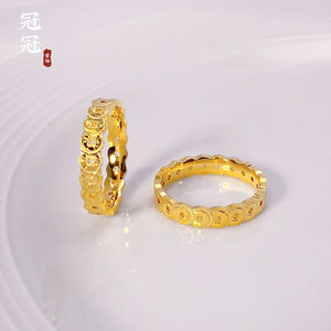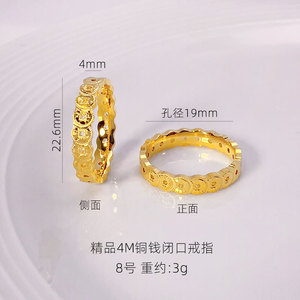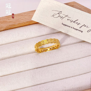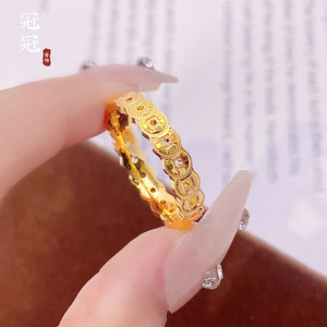 金店同款古法沙金爆闪碎碎冰铜钱戒指 高级感钱多多镂空素圈指环