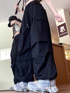 美式阔腿伞兵工装裤男女街头嘻哈宽松潮流中性风高街休闲运动长裤