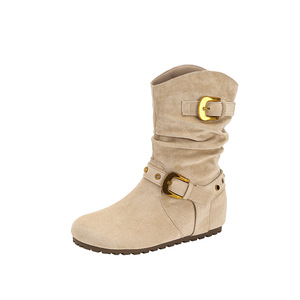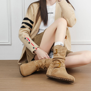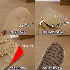复古内增高勃肯短靴子女2025秋冬新款西部牛仔靴显瘦堆堆靴马丁靴