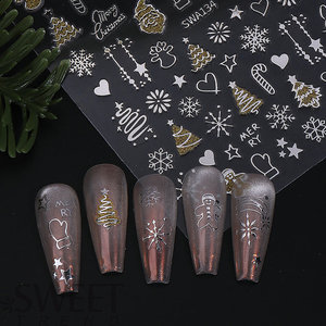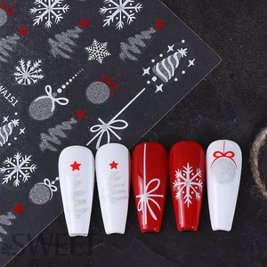 ins风圣诞节系列美甲贴纸闪粉简约百搭白色雪花麋鹿铃铛指甲贴花