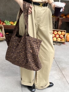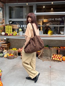 乔戈2025秋冬新款帆布豹纹托特包复古慵懒风绒面单肩手提包女士包
