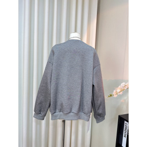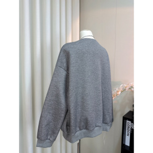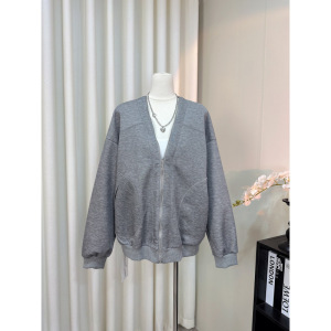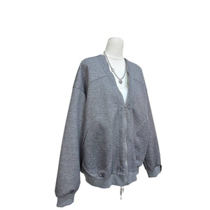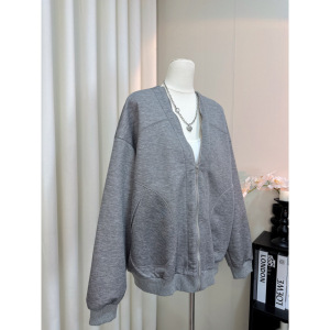 塞纳 V领拉链灰色卫衣外套2025秋季新款宽松慵懒风百搭上衣女