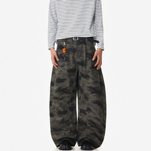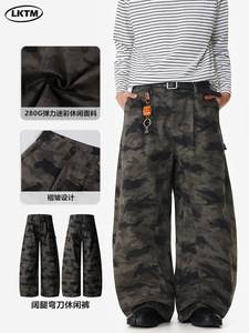 LKTM男装 美式街头复古迷彩弯刀休闲裤男女潮牌设计感baggy阔腿裤