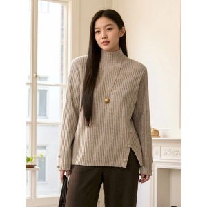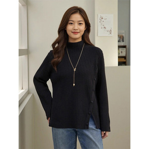 大码毛衣开叉下摆宽松上衣200斤胖MM半高领百搭时尚打底衫9179
