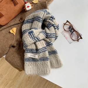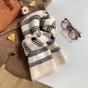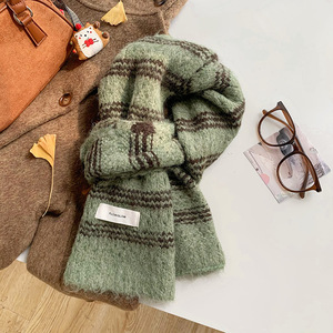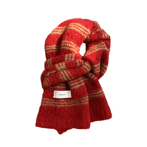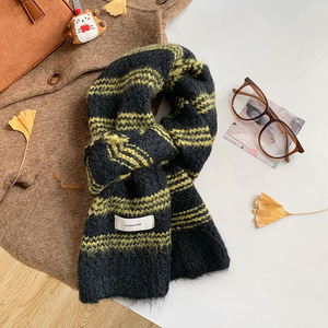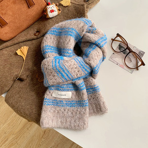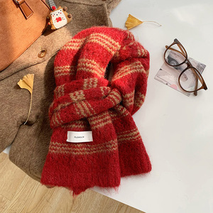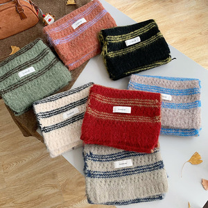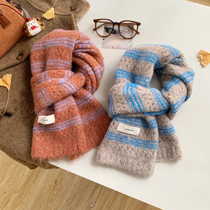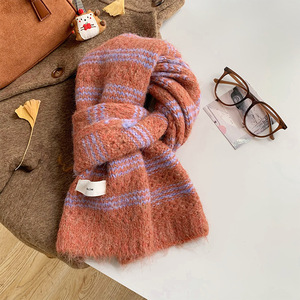 彩虹色围巾女冬季高级感学生保暖围脖百搭羊毛混纺加厚针织批发