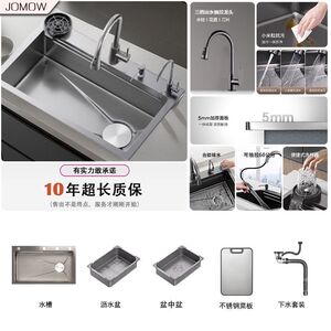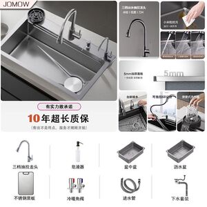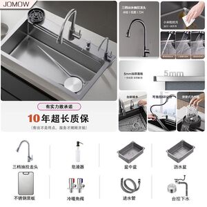 A简配套餐:无龙头【配洗切沥三件套】-加厚5.0双轨【枪黑色75*45】顺丰包邮