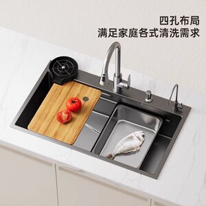 F单水槽下水套:无龙头【可选左右下水】-加厚5.0双轨【枪黑色80*45】送货上门