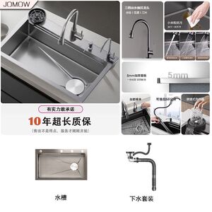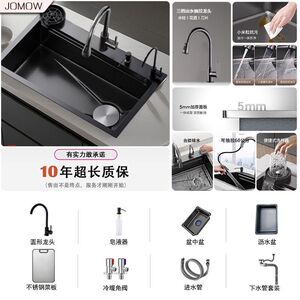 F单水槽下水套:无龙头【可选左右下水】-加厚5.0双轨【枪黑色68*45】质保十年