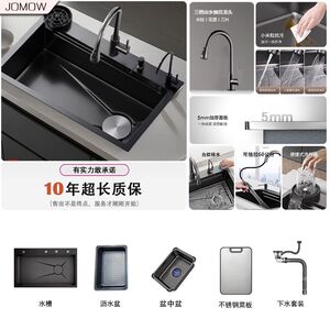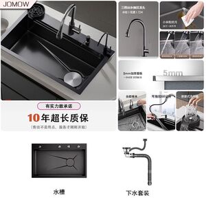 F单水槽下水套:无龙头【可选左右下水】-加厚5.0双轨【枪黑色75*45】顺丰包邮