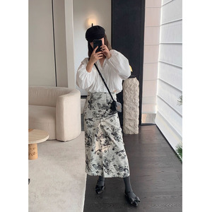 两面穿 国风新中式水墨印花半身长裙小众设计直筒裙子春2025新款