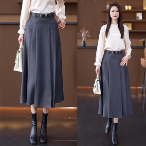 a字半身裙女2025新款伞裙梨型身材遮胯长裙子高腰显瘦毛呢西装裙