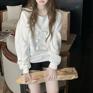 蝴蝶结圆领长袖白色卫衣女2025新款巨好看的无帽短款上衣慵懒风潮