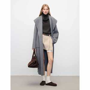 2025冬季新款气质新贵慵懒浴袍风重磅双面羊毛中长款大翻领大衣女