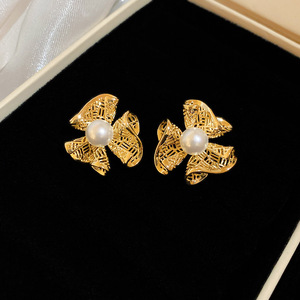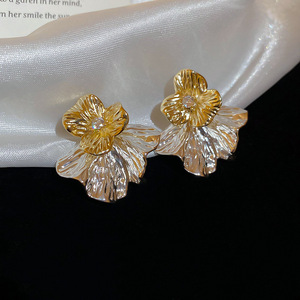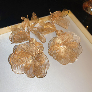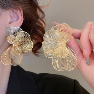 银针金属风镂空花瓣花朵耳环轻奢高级感耳钉欧美跨境时尚百搭耳饰
