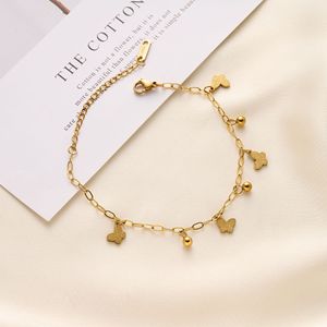 不锈钢流苏蝴蝶仙子手链女不掉色百搭小金球甜美可爱18k金手饰品