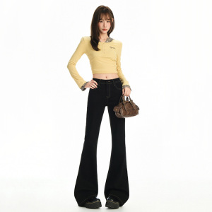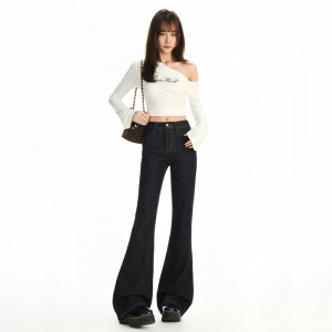 不贴腿微喇牛仔裤女款秋季新款设计感美式弹力宽松显瘦阔腿喇叭裤