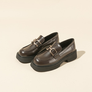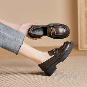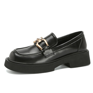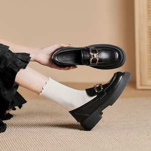 厚底学院英伦风jk小皮鞋女2025新款春秋一脚蹬乐福鞋黑色复古单鞋