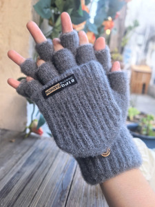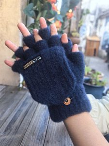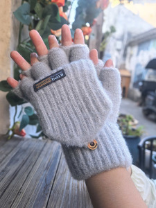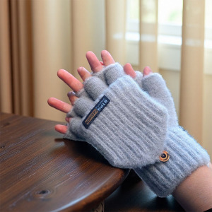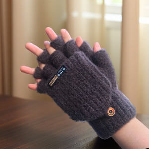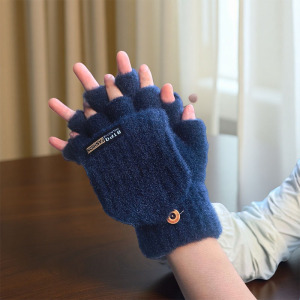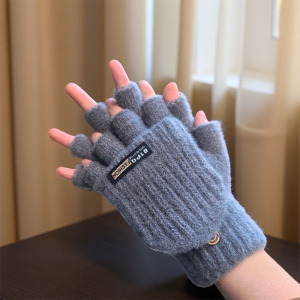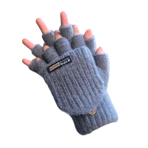男士冬季仿羊绒保暖加厚半指手套半截翻盖学生写字开车玩手机冬天