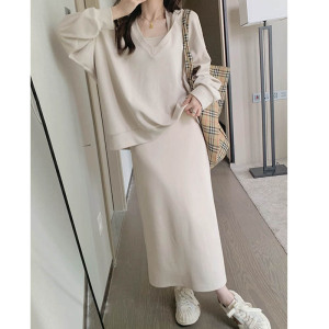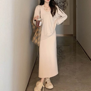 欧美跨境亚马逊早初秋季穿搭配一整套装小个子连衣裙女韩系感长裙