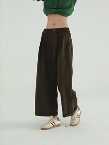 特舒棉lulu卷边裤!轻复古百搭休闲松紧腰阔腿裤女宽松显瘦九分裤