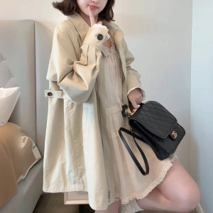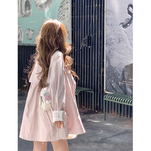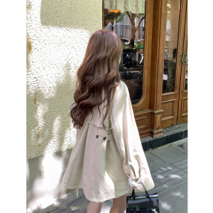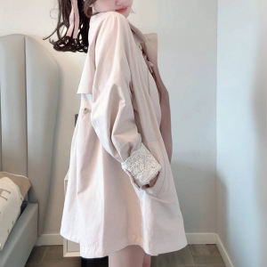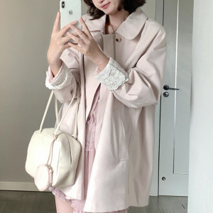 韩系温柔少女【秋日慕斯】袖口蕾丝拼接设计风衣外套女秋宽松上衣