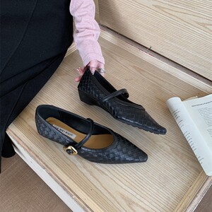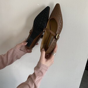 复古尖头一字带单鞋女鞋子2025春秋季法式软底不累脚黑色通勤鞋潮
