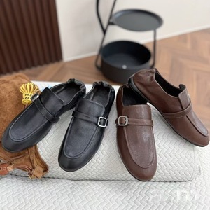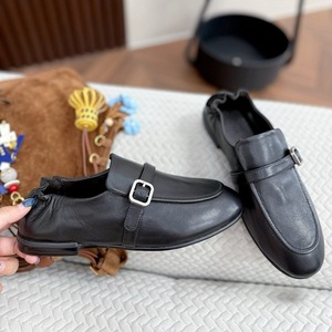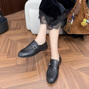 2025秋新款真皮平底软跟不累脚软小皮鞋女薄底一脚蹬英伦风乐福鞋