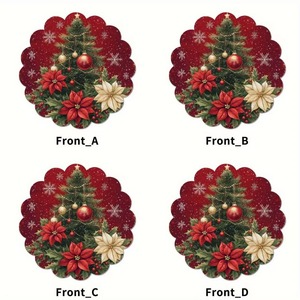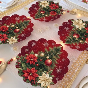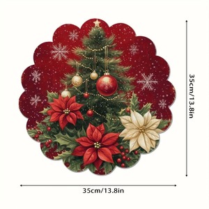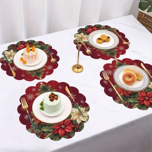 tenu外贸爆款4件装圆形餐垫圣诞餐垫圣诞节装饰印花防滑耐用