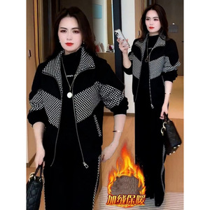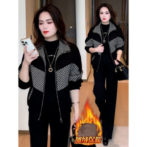 加绒加厚套装女冬季新款时尚洋气保暖外套女小个子妈妈高档两件套
