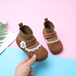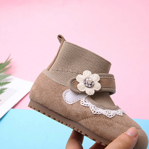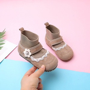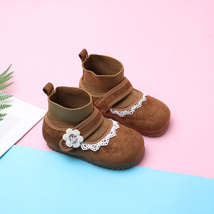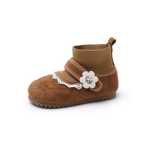 女童公主小皮鞋软底防滑婴幼儿学步短靴子秋冬新款袜子靴1-3-6岁