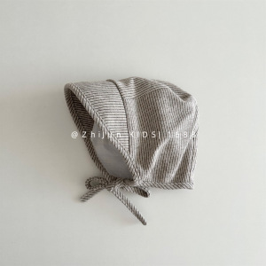 条纹鸭舌帽系带套头帽