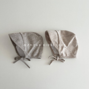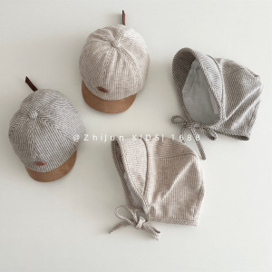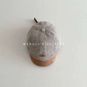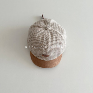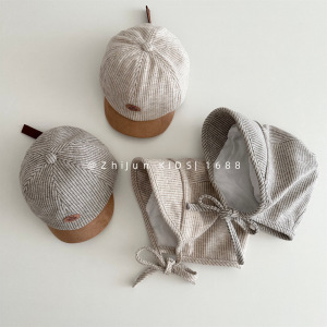 婴幼儿韩系宝宝短檐鸭舌帽细条纹系带宫廷帽男童出游防晒棒球帽子