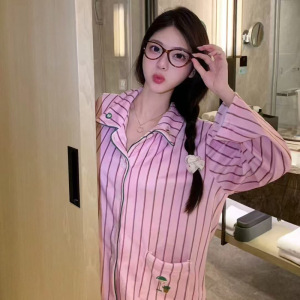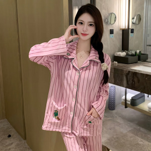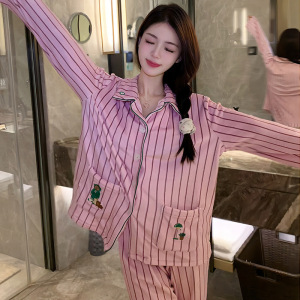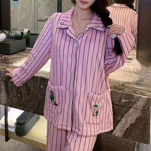 海岛绒睡衣女冬季新款高级感卡通小熊条纹套装春秋加厚保暖家居服