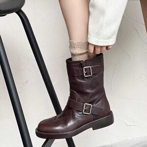 英伦风马丁靴女低跟做旧复古黑色短靴子皮带扣帅气骑士靴