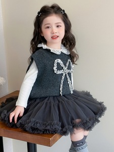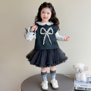 女童秋装套装2025新款炸街女宝宝毛衣马甲三件套春秋款儿童半身裙
