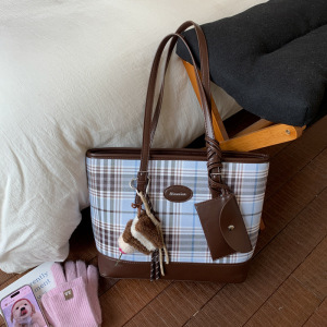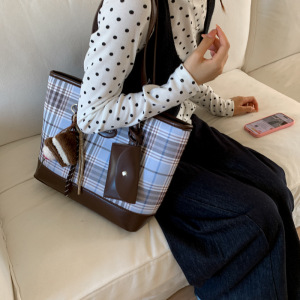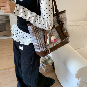 韩版休闲大容量腋下包包女2025新款格纹手提托特包时尚单肩通勤包