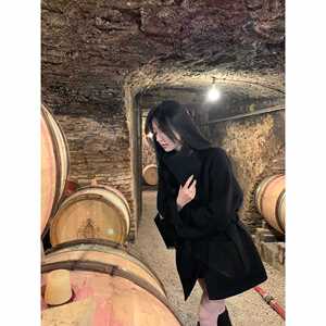2025冬季新款时尚绵羊毛双面呢斗篷大衣女装冬系带收腰中长款外套